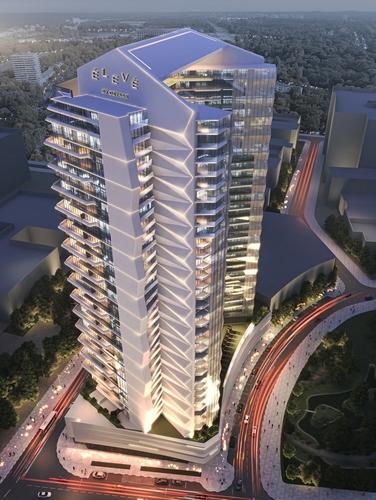 ÉLEVÉ guarantees an exceptional living experience with thoughtfully curated world-class amenities. The grand portecochère, a masterpiece of understated elegance and streamlined design, welcomes you with a seamless drop-off. Step into the lobby, a haven of soft hues, beautiful aesthetics, and natural light.